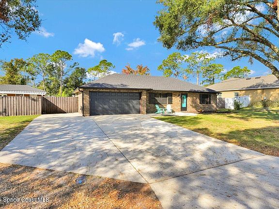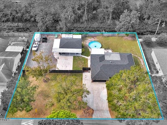 Amazing opportunity to own one of the most sought after properties in Port St. John! This double lot property features nearly a half an acre, with an 1800 sq ft 4 bedroom, 2 bath, 2 car garage, primary residence, as well as a 600 sq ft detached shop. With a huge fenced back yard, double gates, and plenty of room for toys or additional parking, this one has it all. The shop is concrete block and has its own AC controls and garage door. Half sunk in pool with water feature, covered rear porch, and built in outdoor fire pit, you're ready for entertaining. New roof Oct 2024, new gutters 2024, water heater 2023, updated kitchen, stainless appliances, and no carpet!