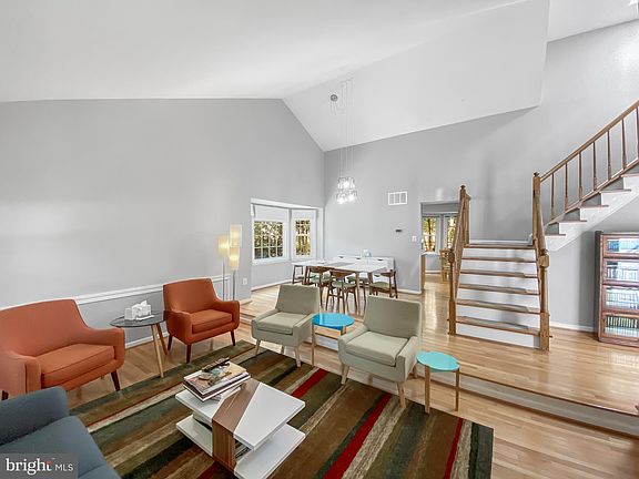 NO REAR NEIGHBORS, an EXPANSIVE FLAT FENCED BACKYARD, and a prime Virginia Run cul-de-sac setting. Sun cascades through the main level with soaring vaulted ceilings and gleaming hardwood floors that highlight space and style. The living and dining areas are open and bright, with hardwood floors that continue into the upper hall and the kitchen featuring maple cabinetry, pull-out shelves, generous counter space, and a bay-window breakfast nook perfect for morning coffee. Glass-paneled French doors open to the inviting family room with a cozy fireplace and direct access to a custom patio and the private backyard. Upstairs, the vaulted primary suite includes French doors, a walk-in closet, and an ensuite bath with double vanity and skylight. Three secondary bedrooms with ceiling fans share a full hall bath. The finished lower level adds versatile space with a rec room, fifth bedroom, full bath, and laundry/storage with bonus lighted crawl space. Most rooms are wired for internet, ideal for remote work and streaming. RECENT UPDATES include a new roof and gutters (2024), new aluminum trim, fresh paint, updated windows, and newer A/C. Living in Virginia Run means enjoying a vibrant community with a pool, clubhouse, scenic trails, sports courts, playgrounds, and year-round neighborhood events, all just minutes to commuter routes, shopping, dining, and parks. Virginia Run offers the perfect blend of comfort, connection, and community!