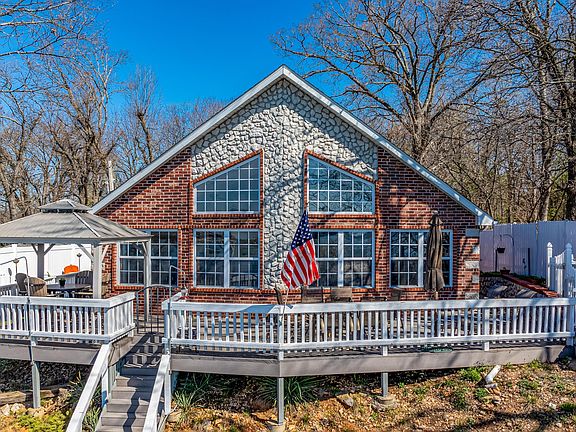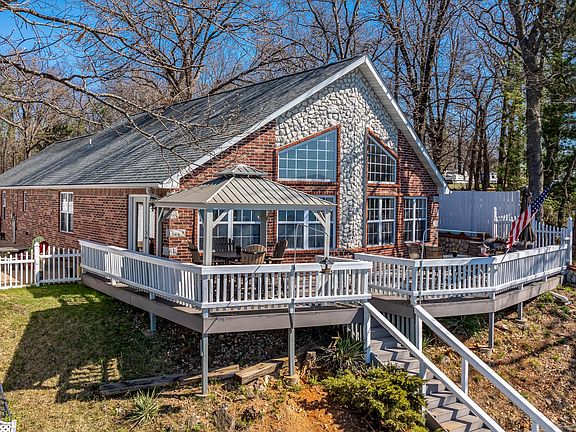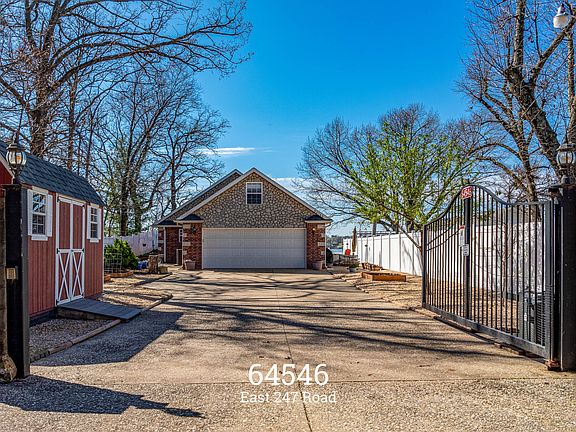 Charming waterfront home with fabulous 180-degree views of Grand Lake. Covered Boat Dock with a single boat slip, 2 PWC floats, huge trex deck on lakeside, fenced yard that is perfect for kids and pets. This lakefront home features an open floor plan with Living, kitchen and dining in the main great room, it also features a vaulted beam ceiling with a wall of windows on the lake side offering awesome views, spacious kitchen, island eating bar, granite countertops, and stainless-steel appliances. The Primary suite is on the main level, along with a guest bedroom and bath. Second level features a loft bedroom, full bath and an office area. Beautiful lot with white vinyl privacy fence, flower beds and garden areas, storage building is 10'x16' , and a Rod iron gated entry. 10 min to Gove This home is a custom built and a well maintained brick home New Roof Jan 2024, new retaining wall and new vinyl fence 3/2024, Boat Dock (2016) with a 10'x26' slip and lift and 2 pwc floats (2020). Shed 10'x16' with 2 work benches and 2 loft storage areas above the work bench. Well Water, water filter & softener system, Hot water tank electric, BOLT high speed internet & TV, REC-NEO electric.