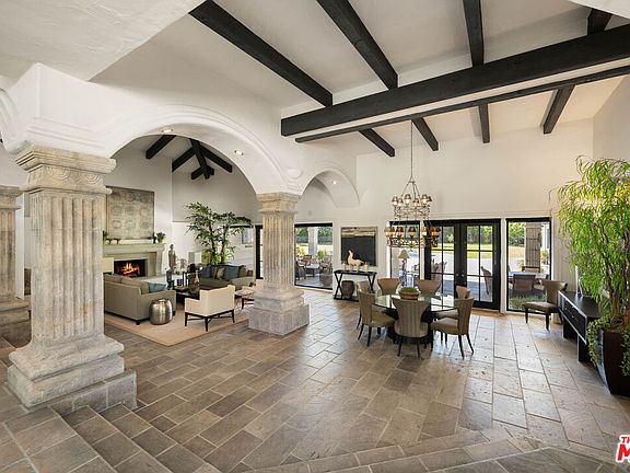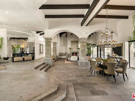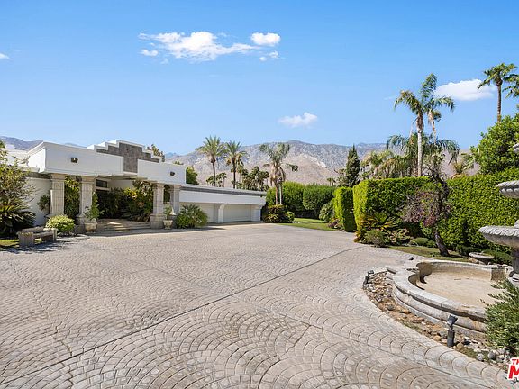 Gated Community, must call in advance for access. Rare opportunity to own this bespoke 1.25 acre (fee land) 6,600 square foot estate within the private 24-hour guard gated prestigious community of Bella Monte in the South end of Palm Springs. The entry courtyard is reminiscent of the Grand Wailea on Maui, with its lush landscaping and resort sized fountain. Flanked by a four-car garage on your right the impressive entry to the home whisks you away from everyday life and into a foyer that reveals impressive, vaulted ceilings, open living and dining rooms and a glimpse of your own personal park. You will immediately be drawn outside with a covered seating and lounging area for over 20 people.  The custom designed all slate pool and hot tub, come to life as the fountain glistens in the sun or moon light. A separate barbeque area with twin grills easily handles a small intimate meal or stands ready for hundreds of guests. Take a stroll around the grounds and embrace the jaw-dropping mountain views!Time to go back inside; for fun lets go into the magical den, a room unlike any you have seen before.  This six sided over 1000 Square Foot room, with slate floors and a nearly 18-foot wood beamed ceiling, is calling your name.  There is a sunken bar and inviting built-in entertainment center.The chef's kitchen has upscale appliances, stone counters, a pass-through window to the park, built in desk, walk-in pantry and a separate eating area. The primary bedroom is generous in size and intimate in feel, light the fireplace as you relax in bed.  The bathroom is truly a spa experience with dual showers, one of which is a steam shower and a luxurious soaking tub.  Dual sinks, large mirrors and a private water closet.  The enormous walk-in closet, with space for a massage table is just a dream! There are three other ensuite bedrooms and two powder rooms and a laundry suite. This home features custom designer features through with wonderful walls for art.  2x6 construction, 4 zone HVAC, and has been well maintained. Come take a tour, you won't be disappointed. For fun the adjoining  acre plus 5450 square foot 5 bedroom, 6 bath estate is also for sale.  Talk about a family compound!