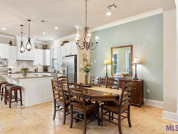 This charming cottage style home with raised front porch in Audubon Square is the perfect home you have been waiting to hit the market! Built by Bardwell Homes in 2013, this original owner took advantage of many of the builder's upgrade features and options. Enjoy the swing on the front porch or the serene, lushly landscaped backyard area with a covered patio. Coming in the front door you will enter into a spacious den with lots of windows and custom transoms for plenty of light. The fireplace is equipped with gas logs and is flanked by functional built-ins, both with cable and electrical outlets, and shelving to allow for large tvs. Then an open dining area will hold a great size table, chairs and buffet. The kitchen has a large island with cabinets on both sides, a 5-burner gas cooktop, and plenty of cabinets and counterspace. The countertops are quartz and the flooring throughout this open area is natural stone. Built-ins were added between the kitchen and laundry to provide for pantry and mud-room type space. The laundry includes a sink. Master suite is spacious with a large walk-in closet, separate shower and garden tub, and double vanities. Exterior has gutters and french drains in both front and back and there are sprinklers in the flowerbeds with timers. The two car garage includes a storage with electrical. This home is in pristine condition.