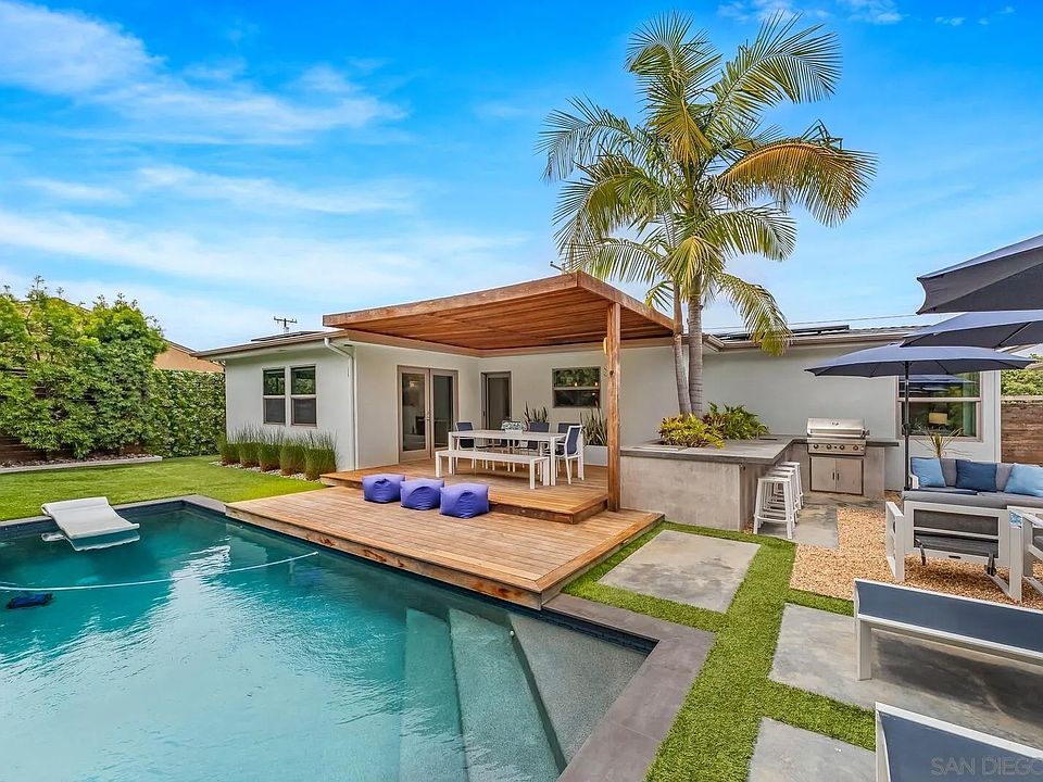 TURN KEY MID-CENTURY MASTERPIECE – A 3 bedroom, 2 Full Bathrooms Modern Oasis for Entertainers right in the heart of San Diego! Outside, the Backyard is a true Entertainer’s Paradise, with modern built-in outdoor speakers. Dive into the gorgeous Saltwater Pool, bask in the San Diego sunshine, or host unforgettable Outdoor Soirées with ample space for relaxation and recreation. Eco-conscious Luxury comes standard with FULLY PAID Solar Panels for energy efficiency, a brand new built-in zero-scape landscape and irrigation feature, A brand new Tankless Water Heater, brand new Water Softener & a dedicated brand new Mini Split AC System in the Primary Bedroom, in addition to a central AC System throughout the home - embracing a greener future while maximizing convenience. Don’t miss this incredible opportunity to own a home that combines Style, Sustainability, and Endless Possibilities. This is the Dream Home you’ve been waiting for! Over $250k Upgrade List available under the Docs Tab. Seller is open to giving Seller Credit towards Buyer's Rate Buy-Down; and Outdoor Furnitures can included with the right offer!