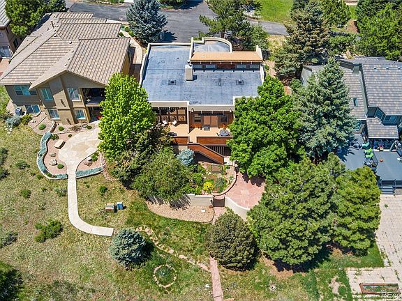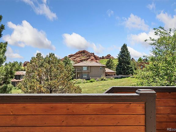 A cozy wood-burning stove in the living room adds warmth and character while the unique walled private patio offers rare seclusion, turning outdoor living into a serene escape. The beautiful primary suite showcases soaring ceilings, two walk-in closets, and an updated ensuite bathroom. An additional main-level bedroom is served by an updated bathroom located in the hall. The finished lower level provides walk-out access, a wet bar and a 3rd bedroom and bathroom. Updates include new stainless refrigerator, stove/double oven and floor tile in the kitchen, a Mitsubishi wall a/c unit in the living room, new front yard rock landscape, roof improvements and an updated master panel for the sprinkler system. Unforgettable sunrises and moonrises can be enjoyed from the back deck in this rare sanctuary where heritage, comfort, and stunning nature come together seamlessly. The well-kept community features a manned security gate and reliable management with walking trails throughout the neighborhood, hiking among the massive red rocks in Roxborough State Park. Chatfield State Reservoir is also just a short drive away, inviting endless outdoor activities.