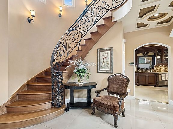 You are welcomed through a towering steel & glass entry door complimented by a stunning transom arched window, that allows you access onto a large format tiled flooring equipped with radiant heat throughout the residency. Following suit, a two story entrance foyer sets the tone for the first level with a circular staircase with ornate iron railings linking the public spaces with the peaceful private quarters by way of a stunning skywalk on the upper level. Whether you’re simply relaxing in the Double Height Great Room by your stunning fireplace with a spot of tea, or gazing out onto the grounds from the stunning skywalk, you cannot help but to become smitten with the exceptional architectural detail & elegance of the home. Not to be outdone, the magnificent gourmet chef's kitchen with extensive center island is complimented by both Wolf & Sub-Zero appliances, whereas every detail has been accounted for down to a Built-In Coffee Maker Station. Whether you wake up & take in the sunrise from your bedroom balcony overlooking the grounds, or simply cozy up in the Great Room by the fireplace with a glass of wine after a long day’s work, this home will certainly feel like the castle you always longed for. All the amenities of a modern castle await both you & your family!