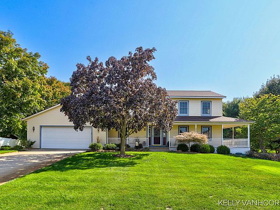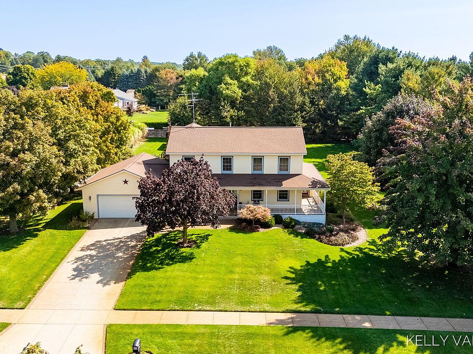 Spacious 4-bedroom, 2.5-bath home in the heart of Byron Center! A welcoming wraparound porch with side entry leads to a flexible main-level office. The first floor features a huge living room, open kitchen, dining area, half bath, and convenient laundry. Upstairs you'll find oversized bedrooms with large closets and two full baths, offering comfort and function for everyone. The daylight basement is plumbed and ready to finish for added living space or storage. The property sits on nearly an acre, with a fenced backyard, garden potential, and an extra two-stall garage. Conveniently located near Blue Ribbon schools, healthcare, shopping, and dining—yet with a private backyard retreat—this home offers the best of both space and location.