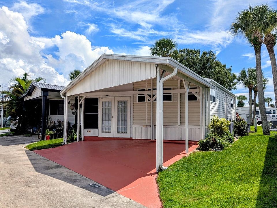 Own your own land and enjoy this cozy, affordable one-bedroom home located in the sought-after 55+ community of Ancient Oaks! This active community offers a variety of amenities, including a heated screened in pool and spa, marina with dock and boat ramp, fish cleaning station, shuffleboard courts, community laundry, and a recreation hall with a library and exercise room.Recent upgrades to the home include a roof, flooring and subfloor, water heater, central A/C,. Additional features include a storage shed, covered parking, low property taxes, and low HOA dues. sliding door hurricane shutter,Don't miss this opportunity to enjoy comfortable living in a vibrant community!