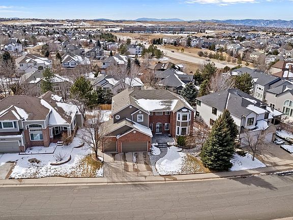 Welcome to this stunning home in Wildcat Ridge. Step up to the grand entrance with red brick and a massive stamped concrete porch. Inside you will be welcomed by a grand staircase, gleaming hardwood floors and all of the magnificent natural light. A quiet formal sitting area with a bay window and dining room featuring a beautiful chandelier on the main along with a spacious study featuring custom built in's and glass double doors. The central family room off of the kitchen area is open and inviting with a cozy fireplace & windows galore. The stunning kitchen boasts a large kitchen island, solid granite counters, custom cabinets, side bar with a bar refrigerator and a walk in pantry. Stainless appliances, 6-burner Wolf stove, double ovens and a Sub-Zero oversized refrigerator. Enjoy outdoor living space just outside the kitchen with a custom covered patio to enjoy those nice Colorado days. Up the grand staircase and you will find the huge primary bedroom with it's own fireplace, 5-piece primary bathroom & walk in closet. Three more spacious upper bedrooms, two have their own full bathroom and one with it's own 3/4 bathroom. The finished basement is a perfect entertaining space with a custom wet bar, home theatre, area for a pool table, exercise equipment or other. One more bedroom in the basement with a 3/4 bathroom. 3-car garage. Awesome location close to Park Meadows, DTC, I-25, hiking/walking trails & the Bluffs. Wildcat Ridge features it's own pool, park & playground. Low HOA's, Rock Canyon HS feeder, walking distance to all of the schools & a great location make this the ideal home.