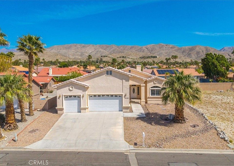 *PRICED TO SELL* Welcome to 64586 Brae Burn Ave, a beautiful 3 bedroom, 2 bath home located in the lovely & desirable Mission Lakes Country Club neighborhood of Desert Hot Springs. This wonderfully maintained property was built in 2006 and features 1,855 sqft of living space with high ceilings, tile flooring and a spacious open-concept layout. The front door opens to a bright & airy living room which adorns a lovely corner fireplace, ceiling fans and multiple windows that let in an abundance of natural light. Just off the living room is the formal dining space which flows effortlessly in the kitchen area complete with recessed lighting, stainless steel appliances and ample cabinet & counter space. All 3 bedrooms follow suit with high ceilings, ceiling fans, carpeted floors and the primary bedroom boasts an ensuite bathroom with a dual sink vanity & jetted tub. There is also a convenient indoor laundry room that leads to the attached/finished 3 car garage. Outside you'll be delighted to find a lovely covered patio, fully fenced yard and plenty of space to entertain or relax around a firepit on a starry desert night. Member amenities include: access to the community Riviera style pool, 2 spas, a recreational gym, pickle ball courts, tennis courts, a cafe/restaurant and UNLIMITED GOLF FOR 2 ON TITLE on their championship Ted Robinson designed golf course. Not to mention the full service hotel for friends and family to stay in and it's convenient location near the 10 freeway, just minutes to downtown Palm Springs and Palm Springs International Airport. (Annual fee of $480 is for food minimum at the clubhouse) Come take a look & let this home's light, bright & charming allure do the rest. Your new desert home or weekend retreat awaits!