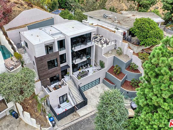 Spectacular views of iconic Hollywood sign, city lights and mountain. Contemporary architecture located in the serene and quiet Hollywood Hills for quintessential Hollywood lifestyle. Elevator to all floors. The house features 4 bedrooms all en-suite 4 bathrooms. 2 Half bathrooms, one on second floor and one the third floor. First floor has oversized 2 car garage with oversize driveway. One bedroom, private bathroom with walk-in closet and private outdoor seating. On the second floor is the living/dining with fireplace opening to large outdoor deck for bbq/dining and gourmet kitchen/nook with top of the line appliances with separate outdoor deck. Third floor is the family room with balcony and a bedroom with private bathroom and walk-in closet. Fourth floor has one bedroom with private bathroom and the oversized master bedroom with fireplace and balcony, abundance of natural light, private bathroom, tub and walk-in closet. Minutes from numerous hiking trails, shops, trendy restaurants and LA's best nightlife. The upper deck is about 300 sq feet, perfect for entertaining while enjoying the landmark Hollywood sign. The back deck has some plumbing work for "POSSIBLE" oversized spa. Equipped with security system, cameras, controlled gate and smart home feature. Visit Virtual tour.