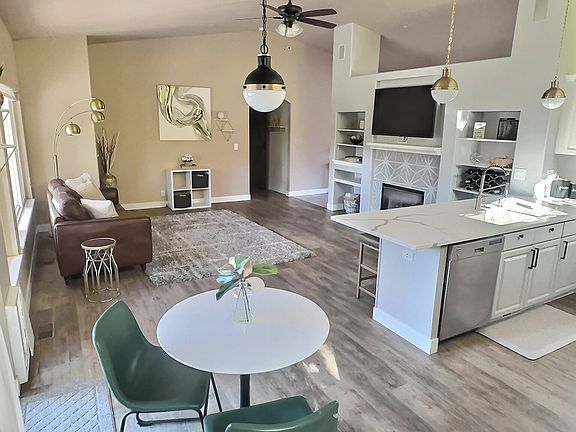 Stunning single-level ranch in Southeast Boise's highly coveted Columbia Village! Fully updated with brand new LVP flooring, fresh paint, quartz countertops, updated backsplash, modern fixtures, and updated appliances throughout. Large windows flood the home with natural light, while the cozy double-sided gas fireplace adds warmth and charm.