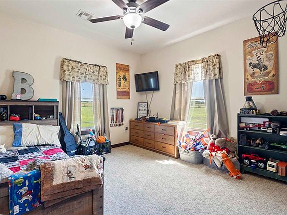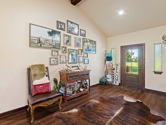 Custom 3 bed, 2.5 bath home built in 2018 on 35 acres with open-concept design, vaulted ceilings, and oversized garage. Features a 5-stall barn with electric, concrete floors, wash rack, tack room, outdoor stalls/turnouts, roping arena with return alley, and cross-fenced pastures. Pipe fencing around the home and barn adds style and security. A turnkey equestrian property offering space, function, and a ranch lifestyle.