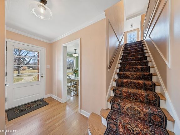 NEW on the Market! Charming Old Flossmoor 4 Bedroom, 3 Bathroom Cape Cod home with unique vintage details, functional updates and an oversized corner lot. This home is situated in a quiet, tree-lined neighborhood with winding roads. Everything about the home and the area is steeped in character and charm. Formal living room with a wood burning fireplace and French doors to the large deck. Step out to the recently refinished and stained cedar deck with built- in seating for family or gatherings. On the first floor-large bedroom with en-suite, updated bathroom with travertine floor, maple vanity w/vessel sink, soak-in, jacuzzi tub & corner shower, accessible also from hallway. The 2nd bedroom/office, adjacent to the bathroom is also on the first floor. Separate dining room and updated kitchen with granite countertops and a pantry. Kitchen sink window looks into the front yard and neighborhood. Well maintained, hardwood-oak floors on the first and second floor. For the vintage lovers-original hardware on interior doors and the front door. Original solid wood doors, with a unique millwork design. Crown molding on the first floor and picture rail molding on the second floor. On the second floor there are two more large bedrooms with a shared, updated bathroom with a corner shower, and a cozy loft space that can be used for an office or work space. Ample storage on the second floor with two walk-in attic spaces, a cedar, and a linen closet. Full basement is partially finished with plenty of extra room for storage. Utility room with furnace, water heater, washer/dryer, sump pump and sink; Project room with large bench for woodworking & crafts; Family room with faux fireplace, fully waterproofed (2022), and ready to be finished your way; central common area with side area for workout space. Gorgeous, artistically designed and landscaped yard filled with bushes, trees and perennial plants, and a wooded area with a shed. The shed was designed and built by the current owners with 200 amp service, a woodworking bench-perfect for projects, storage or a retreat. Spacious, concrete driveway was added as part of the landscape design, with enough room for 5 cars. Light fills every room of this home and the current owners have invested in its upkeep and diligent maintenance. Within walking distance to downtown Flossmoor, with Metra Electric train station, library, restaurants, shopping and several parks. Highly rated school district, wonderful Park District, many activities and festivals nearby. It is truly a MUST SEE home!
