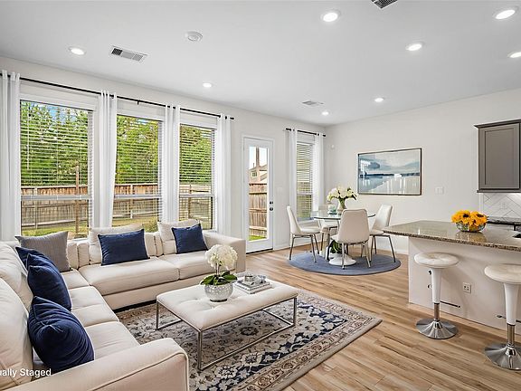 Immaculate townhome in the master-planned community of Grand Central Park. Conveniently located near major hospitals, shopping, dining, and just a short drive to The Woodlands. The open-concept layout features high ceilings and vinyl plank flooring throughout the main level. The kitchen includes stainless steel appliances, granite countertops, a large walk-in pantry, and a second full pantry for extra storage. Upstairs offers a versatile loft ideal for an office or flex space. The primary suite features dual sinks, an oversized walk-in shower, and a spacious walk-in closet. The landscaped front yard provides great curb appeal, while the backyard includes a custom patio and fire pit. A whole-house water softener, heavy duty overhead garage storage rack, and refrigerator are included. Community amenities include The Lake House, fitness center, resort-style pool, lakes for fishing and kayaking, playgrounds, nature trails, pickleball courts, and dog parks.