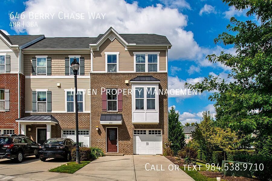 This exceptionally maintained end-unit townhome is located in the highly sought-after Twin Lakes community of Cary. Featuring 4 bedrooms and 3.5 bathrooms, the home offers a versatile layout highlighted by two primary suites. The first is on the main level, complete with a walk-in closet, private bath, and access to the back patio. The second, on the third floor, includes tray ceilings, a spacious walk-in closet, and a luxurious en-suite with a soaking tub and separate shower.