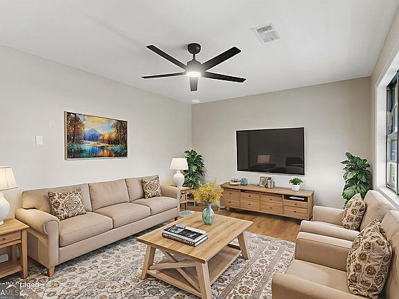 Large fenced in backyardCovered front porchBackyard patioLarge windowsEat-in dining areaNew stainless-steel appliancesNew kitchen cabinets