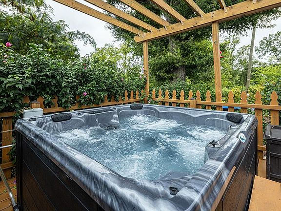 In-law suiteLiving quartersMultiple outbuildingsSpacious interiorsPrivate hot tubWooded terrainFully fenced pastures