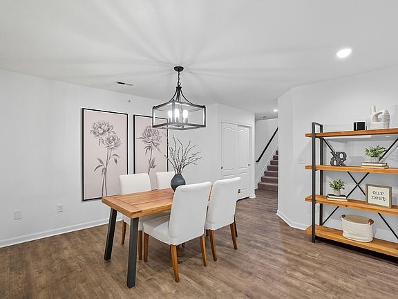 The versatile dining area is perfect for entertaining or everyday meals, and the sunlit living room opens to a covered patio with serene wooded views and a grassy yard—great for pets or relaxation. The spacious primary suite features a private bath with a walk-in shower and a generous walk-in closet.