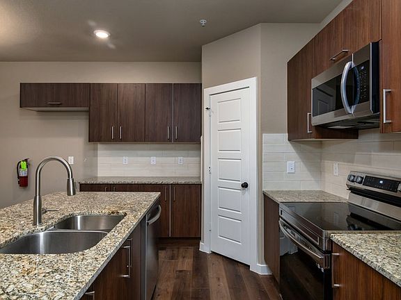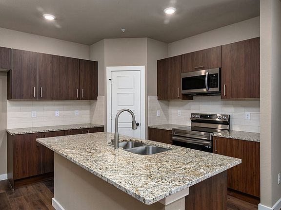 Upgraded carpet in bedroomsTiled backsplashGranite kitchen countertopsWalk in closetsUnder-mount kitchen sink