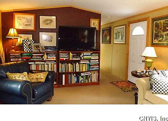 This immaculate 2011 home has been designed and installed with every detail in mind and has been lightly used. A full acre of land with cable TV, public sewer/water and 3 beds/2 baths make this an easy decision as a starter home, for those downsizing, or for snow birds. Many MacKenzie Childs accessories stay. 420 square foot deck in back with a hot tub is a perfect setting to spend those beautiful summer days! There is also plenty of room to store the boat and other toys. Just a short drive to all services, Frontenac Park.