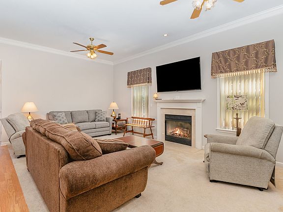 This spacious and move-in ready townhome is located in a welcoming 55+ community. It offers 2 bedrooms, 2 full bathrooms, plus a flex room that can be used as a 3rd bedroom, office, or hobby space. Enjoy two cozy fireplaces, a large family room, and a bright sunroom, perfect for relaxing or entertaining. The primary suite includes a private bathroom with a walk-in shower and double closets for plenty of storage. Step outside to a private fenced backyard with a patio — a great spot for morning coffee, gardening, or quiet outdoor time. With fresh paint throughout, this home feels clean, bright, and welcoming. Everything is on one level for easy living. The community offers great amenities, including a clubhouse, swimming pool, fitness center, and social events. You will love the amazing location close to shopping, dining, and medical care. Come see this charming home and enjoy the lifestyle you deserve!