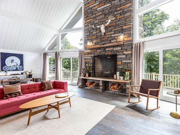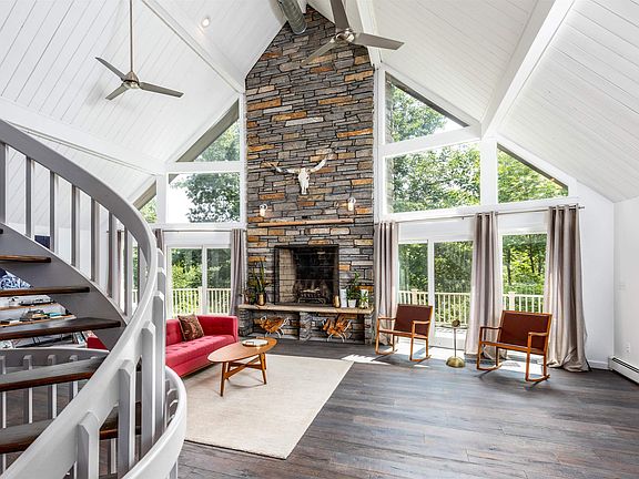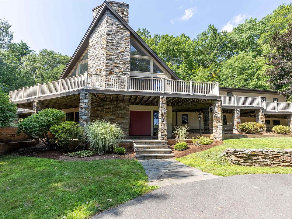 Come see this newly updated 4 Bedroom contemporary home on almost 5 acres in the enviably private and quaint town of Chester. As you approach this astounding home you are greeted with a custom steel pivot door that opens up to your grand lower level with open concept feel. The lower level features a large bedroom (great for first floor living/multi-generational families), gym/exercise room, as well as a new half bath. Head up your oversized spiral staircase to the first floor where you are sure to be blown away by the dramatic 2-story vaulted Great Room with eye catching custom stone fireplace. Custom kitchen with Cabico cabinets, Wolf & Viking appliances, and Quartz countertops will make even the most sophisticated chef smile. The 1st floor Primary Suite features a vaulted ceiling and has a luxury ensuite with custom tiled shower with glass surround, floating double vanity, and skylight bathing the space in natural light. This first floor does not end there! It features an additional family room as well as a half bath and formal laundry room. Rounding out the first floor you have an additional bedroom/office area as well as a sunroom. The 2nd floor has 2 additional good-sized bedrooms and a central full bath with tile surround and glass enclosure. Off the front of the home is a mahogany deck with vinyl railings which spans the entirety of the home, overlooking your large front yard. Private yet only 1 Hour to Boston, 30 minutes to the Seacoast, and 25 minutes to Manchester.