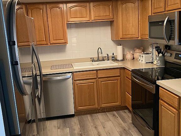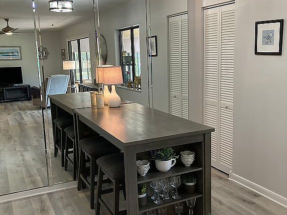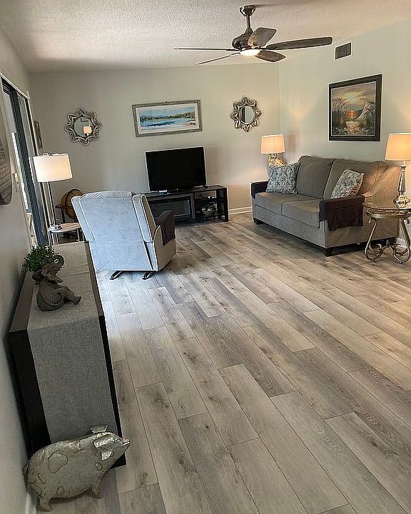Beautiful, upgraded 1st floor condo on the golf course in Twin Lakes Village East is being sold fully furnished, equipped, and move-in ready with upgraded Luxury Vinyl Plank throughout. This first-floor unit offers unparalleled access, steps from the parking lot to the oversized paver patio and enclosed lanai. Get the security of newer appliances, air conditioner, and full-size washer and dryer. Enjoy two remodeled baths, one with a full-size walk-in shower and a spacious primary bedroom with ample closet space including a walk in. Low HOA fees that cover exterior maintenance, insurance, pool, and trash pick -up. For just $5 per year, you can join the Silver Springs Shores Community Center with pools, sports courts, fitness facilities, and social activities. This move-in-ready condo offers comfort, convenience, and beautiful surroundings for year-round or seasonal living.