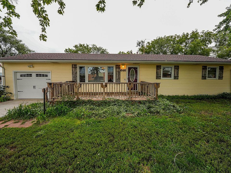 Welcome home to this quality built 3 bed, 1.5 bath ranch style home! Located across the street from Oil Hill Elementary School, this one is just what you have been looking for! Step inside from the front deck into the living room, with a large picture window, oak hardwood floors and nice flow into the kitchen/dining area. Down the hall you will find 3 bedrooms (all with hardwood floors), a full bath, as well as a half bath/laundry area with some additional storage. Ample parking or work space is available in the attached garage, carport OR in the additional detached garage, complete with an above ground tornado shelter, with alley access from the back. Come take a look for yourself!