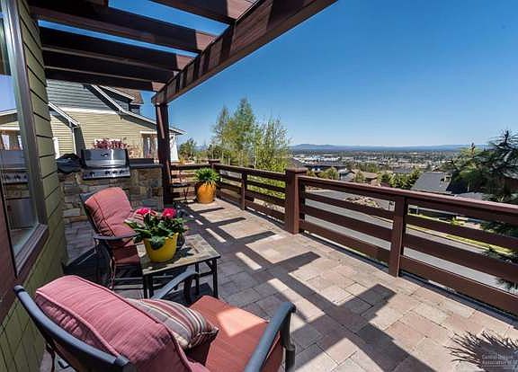 Stunning custom home with oversized 3 car garage at the top of Awbrey Heights with amazing easterly views! Sit on your private deck and enjoy the gorgeous sun rises, or entertain with friends and watch the 4th fireworks on Pilot Butte! One step inside and you will love the feel of this grand great room with gorgeous wood burning fireplace (w/ gas assist) and views from every window! Gourmet kitchen features a slab countertops, large center island & high end stainless steel appliances. Luxurious main level master suite with deck and private hot tub access. Other features include a large private guest suite with deck, double office, large bonus room and abundant storage spaces.