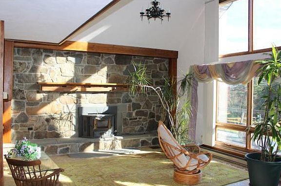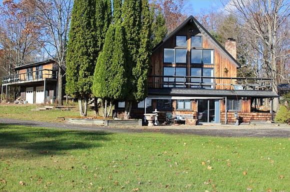 Very interesting contemporary home in private - convenient location, road is town owned/dead-end road, long driveway to home, large windows throughout, stone fireplace burns wood or coal, extensive decking, walk out LL, attached 2 car garage with studio apartment above, 8.5 acres of gorgeous land with 2 ponds.