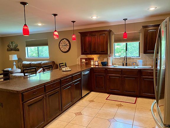 Spacious home on 2.48 wooded acres. 4 bedrooms and 3.5 baths. Recent updates include- new flooring, fresh interior paint, & two barn doors for master closet. The updated kitchen features stainless appliances and a double oven. The home has 2 separate living rooms and 2 master bedrooms. The split floorplan includes an additional galley style kitchen and would be perfect for a mother-in-law suite or guest quarters.