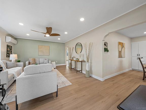 Welcome to this stunning 3-bedroom, 2-bathroom home located on a spacious corner lot in a vibrant San Diego neighborhood. Thoughtfully renovated from top to bottom, this property offers the perfect blend of modern finishes and timeless charm. Step inside to an inviting open-concept living space filled with natural light, recessed lighting, and stylish flooring throughout. The gourmet kitchen boasts sleek white cabinetry, quartz countertops, custom tile backsplash, and stainless steel appliances—perfect for any home chef. The primary suite features a private en-suite bathroom with a spa-like walk-in shower and elegant fixtures. Enjoy the convenience of a separate entrance to the primary bedroom, ideal for guests or potential rental flexibility. The oversized lot is fully fenced, offering privacy and plenty of space to entertain, garden, or relax outdoors. Located minutes from local shops, parks, dining, and freeway access, this home offers both comfort and convenience in one of San Diego’s desirable neighborhoods.
