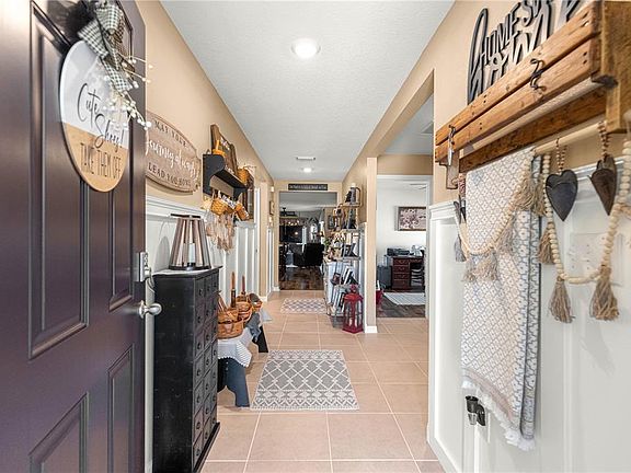Better than new – South East Ocala- upgraded like new 3-bedroom home on a cul-de-sac! Home shows like a model. Loaded with upgrades and thoughtful details, this beautifully enhanced 3-bedroom, 2-bath home stands apart from all the new construction in the area. With over 2,200 square feet under roof, a 2-car garage, and a prime cul-de-sac location backing up to peaceful greenspace, this home offers both privacy and style. Inside, you’ll find no builder-grade finishes here—every detail has been elevated. Upgrades include new laminate flooring throughout, modern lighting, updated hardware, a storm door, and elegant wainscoting accents that provide architectural appeal. The chef-inspired kitchen features granite countertops, a new farmhouse sink, a breakfast bar, a large pantry, and stainless-steel appliances—including a new refrigerator. Laundry room with custom storage, washer and dryer stay. The spacious primary suite boasts a walk-in closet with extra shelves, dual vanity, and a walk-in shower with upgraded glass door. Two additional bedrooms and a guest bath with a linen closet provide comfort and convenience for family or guests. Step outside and fall in love with the outdoor living area—a covered lanai opens to a dual-level deck with a beautiful pergola screened on three sides, perfect for relaxing or entertaining. Just off the deck is a 10' x 16' workshop, ideal for hobbies or extra storage. Located in a deed-restricted, family-friendly community, this home is minutes to downtown Ocala, easy drive to Silver Springs State Park, the Silver River, scenic nature trails, shopping, dining, and entertainment. Why buy new when you can have better than new? This meticulously maintained home offers upgraded quality, privacy, and charm you won’t find anywhere else.