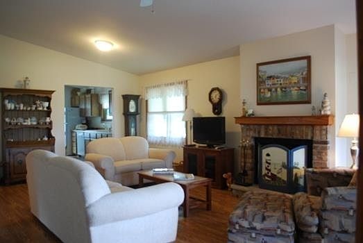 Lovely condo in move-in condition! 2 bedrooms. 2 baths. Eat-in kitchen. Spacious living room has wood burning fireplace. Big master bedroom. Master bath has double vanity. Newer windows. Wood laminate flooring. Relax on the 3 season porch. Finished lower level has huge family room, guest bedroom, storage & laundry room. New wiring and outlets. Roughed in for third bath. Attached 2 car garage. Comes fully furnished so all you need to do is move in & start enjoying life!