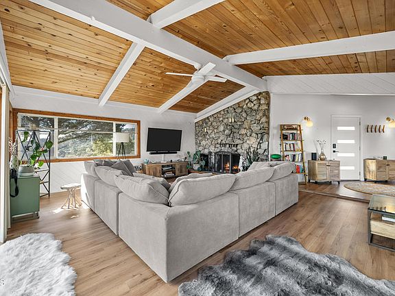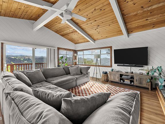 Perched atop a serene mountain in Topanga, this fully remodeled 2-bedroom, 2-bathroom home + attached studio space offers breathtaking 180-degree views and a peaceful retreat from city life. Thoughtfully designed with modern finishes and an open-concept layout, the main residence is bathed in natural light, creating a warm and inviting atmosphere. The vast living area flows seamlessly into a designer kitchen, featuring sleek countertops, custom cabinetry, and high-end appliances. Both bedrooms are spacious and beautifully appointed, offering ample natural light and spa-like bathrooms.A standout feature of this property is the studio, which serves as a perfect guest suite, gym, creative workspace, or additional income opportunity. Complete with a kitchenette, private bathroom, and a cozy living area, this detached space offers versatility and privacy.Step outside onto the expansive deck and take in the panoramic mountain views, the ideal setting for morning coffee or evening gatherings. Surrounded by lush native landscaping, the home offers a true sense of tranquility while remaining just a short drive from local shops, dining, and hiking trails. With ample parking and energy-efficient upgrades, this mountain-top sanctuary is a rare find in Topanga.