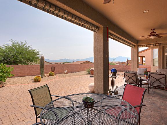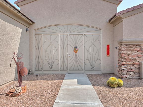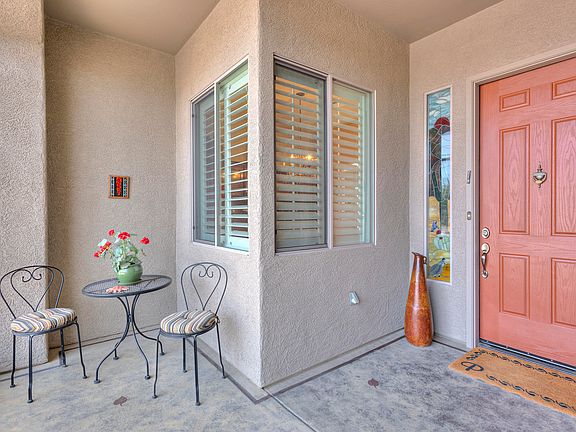 * Impressive front entry with custom privacy security door invites you into the enclosed front patio of this beautiful 1,678 sq. ft. home built in 2006. Step into the foyer with a stained glass side window depicting the beautiful Sonoran desert. Inside, you'll notice the high ceilings and wall of picture windows that bring the outdoors in. An extended covered patio with remote controlled shades gives you lots of room for outdoor dining, gazing at the stars and the mountain view. The open floor plan features a huge Great Room with 42'' upper kitchen cabinets and built in cabinets all around with expansive countertop space. Plantation shutters cover most windows and there is tile throughout except bedrooms. Beautifully landscaped, this exquisite home is awaiting its new owner.