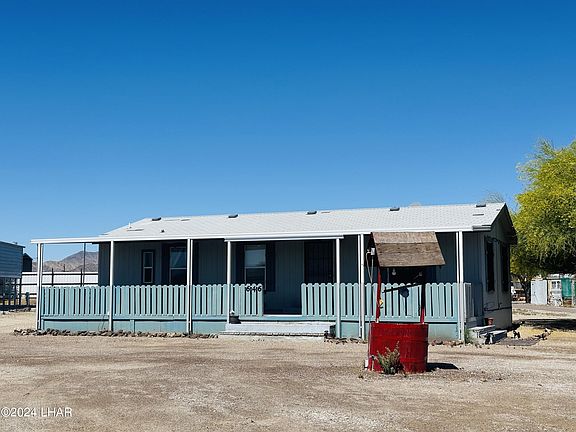 2B/2B home situated on a corner lot, .47 acres located on the Northside of Quartzsite. The covered patio offers an additional 396sf of relaxing space. The living room offers a cozy yet spacious, open floor plan. The kitchen features plenty of cabinets and countertop space, an island/breakfast bar and a dishwasher. The master suite is spacious with a master ensuite and a double closet. The 2nd bedroom can be used as an office, craft room or guest room; it just needs flooring to complete the room. The laundry room comes with a washer and dryer and needs some repairs around the back door and the hot water heater cabinet. There is dual access to the property from the front entrance on the Eastside and on the Northside where you can conveniently access the garage. There are 2 RV hookups and lots of open land for many possibilities. New septic system installed in 2023. A little TLC will go a long way! All offers will be considered.