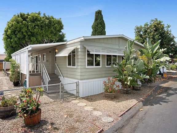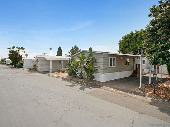 Beautiful Manufactured Home available in highly desired Kearny Lodge Mobile Home Park. Centrally located in beautiful Clairemont with great schools, shopping and access to all major freeways. Lower than average space rent, amazing amenities and a very safe, family orientated community. One of the bigger lots in the park with mature trees and plants. Large living room with a beautiful barn door. Extra large covered porch. The newly remodeled master has a large walk in shower with a built in bench plus a separate vanity seating area. Large, open concept kitchen with newer counter tops and newer carpet. Brand new water heater, central heating and skirting. Dual pane windows throughout. Don't miss this opportunity to own this well taken care of home!