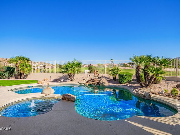 Welcome to Red Mountain Ranch! Experience luxury living at its finest in this stunning 4-bd, 2.5-bath home situated on the 13th green with breathtaking mountain and lake views. Open and spacious layout designed for comfort & entertaining. The gourmet kitchen is a dream come true, featuring two islands, beautiful cabinetry, and plenty of counter space for gatherings. Spaces bedrooms Includes a Jack and Jill bathroom. 2 NEW AC units. Exterior paint 2023. Step outside to your private backyard oasis, where an oversized lot hosts a sparkling pool and relaxing spa, all overlooking the lush golf course. It's the perfect spot to unwind and soak in the serene views. 3-car garage with built-in cabinets, and meticulous upkeep that truly shows throughout the home.