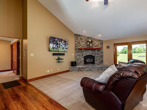 Beautiful, impeccably maintained 3 bedroom, 2 bath custom built brick ranch home situated on 20.45 acres, featuring 2,317 sq feet of living space, 2 large covered porches with concrete floors, full basement with walkout and 9 feet walls, new roof in '23, Bosch kitchen appliances, 3 car attached garage, 56x32x12 detached garage, 550 feet of road frontage, pond, and a beautiful park like setting. This property truly is a hidden gem!