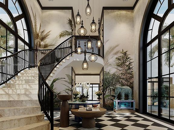 Step into over 11,000sf of architectural brilliance by award-winning Pacheco Architecture. A Cartagena-inspired new construction masterpiece designed to perfection. Not another spec home box. Curved archways, vibrant custom tiles, airy courtyards & oversized windows provide views & natural light in every room. Features include a double-height foyer, grand staircase, luxe primary suite w/ sunroom, smokeless fireplace & spa bath. Enjoy a movie theater, elevator, butler’s kitchen, wine cellar, fitness room, sauna, & massive terraces. A backyard oasis boasts a 70' pool, waterfall & jacuzzi, outdoor kitchen, & private guest suite cabana. Situated on nearly 1 acre on a North Pinecrest secluded street. Act now at a special preconstruction price & to customize final finishes. Est Delivery Q2 2025