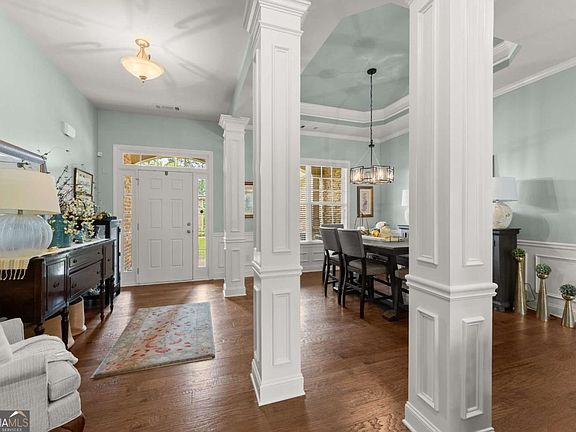 Finished basementBrick-front ranchSoaring ceilingsGleaming hardwood floorsStately columnsOpen-concept designSun-drenched living spaces