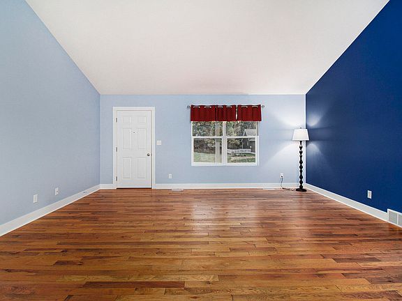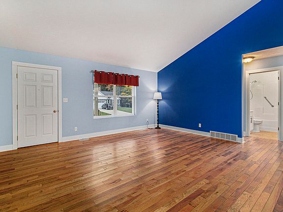 Step inside to an inviting open floor plan with cathedral ceilings that create a bright and airy feel. The spacious kitchen features an island with bar seating and flows seamlessly into the dining area, where a slider leads out to a private deck - perfect for morning coffee or relaxing evenings surrounded by nature. Enjoy the ease of main floor living, boasting hickory wood floors plus nice-sized bedrooms, generous closet space, and a charming front porch that adds to the home's welcoming curb appeal.
