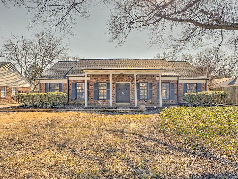 CLASSIC Elegant Ranch BEAUTY in East Memphis! Kit Updates: Mini-Subway Tile Bksplsh,ButcherBlock Ctops, Wide Plank Tiled Flr (2020). Orig.Hardwoods, NEW H2oHtr, 30-YR Arch.Roof/Gutters & Hardy Plank Ext.(2020),New Lighting,SMART Xtras:Thermostat/Locks. Electric Iron Gate w/Keyless Entry + Dbl-Carprt & Wkshop/StorageRm! Welcoming Frnt Brick Walkway,Flower Beds,Porch & Coverd Back BrickPatio (24x12) + ext. Brick Patio(19x7).Enjoy3BR/2BA,Marble Foyer,Liv/Din/DenEat-in Kit,LdryRm/Pantry,Xtra Closets