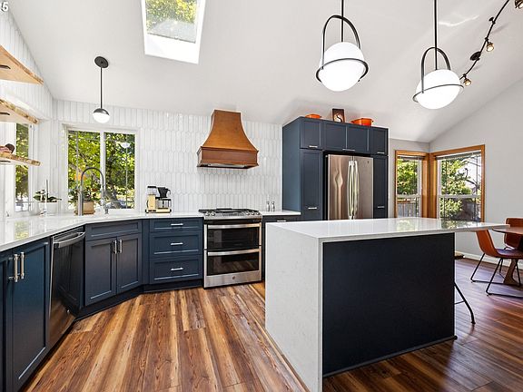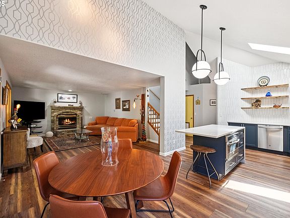 Beautiful oversized corner lot, with ez care landscaping. Once you step inside you'll be instantly "WOWED!" by the openness, vaulted ceilings, and a stunning & modern gourmet kitchen that rivals those found in multi-million-dollar homes. ••• Top-quality cabinets, gas appliances, a spacious pantry, and quartz countertops with a waterfall island. There are 3 ovens as the microwave is also a double convection oven (like a built-in air fryer).A full wall of designer tile adds a contemporary flair that is easy to clean. Four high efficiency skylight brighten the home. ••• Open floor plan with direct access to the living room, dining, and the backyard. ••• Beautiful LVP floors are also practical since they are waterproof and scratch-resistant. ••• The spacious primary suite easily accommodates a king-sized bed, furniture, and there is still plenty of room for an office, crib, or exercise equipment here. The beautifully tiled walk-in shower completes this private ensuite. ••• The backyard is big, private, sunny, and yet offers plenty of shade. Plus a water feature & Koi pond. An outdoor rec room makes a great private mancave/she-shed or sauna. And enjoy relaxing in the newer 6-seat hot tub. ••• The fundamentals are just as impressive: the roof is under 5 years old, and the newer water heater and appliances provide peace of mind, the furnace has been serviced and certified. There is a dog door, and lots of easy to access storage in the attic and garage, top rated schools. You will love living here! [Home Energy Score = 7. HES Report at https://rpt.greenbuildingregistry.com/hes/OR10241389]