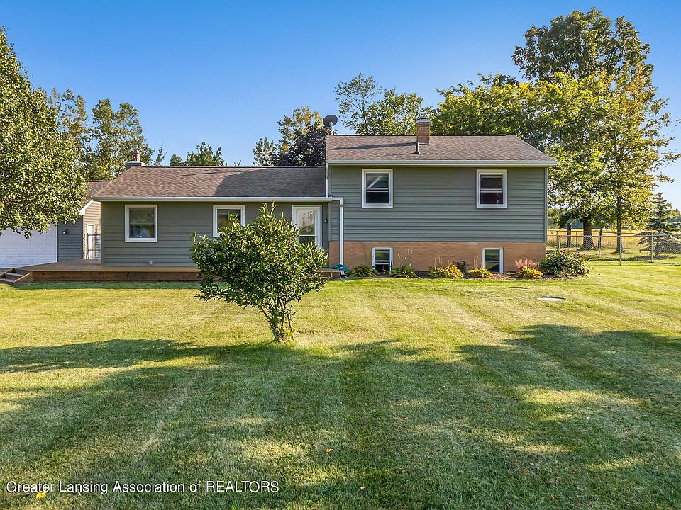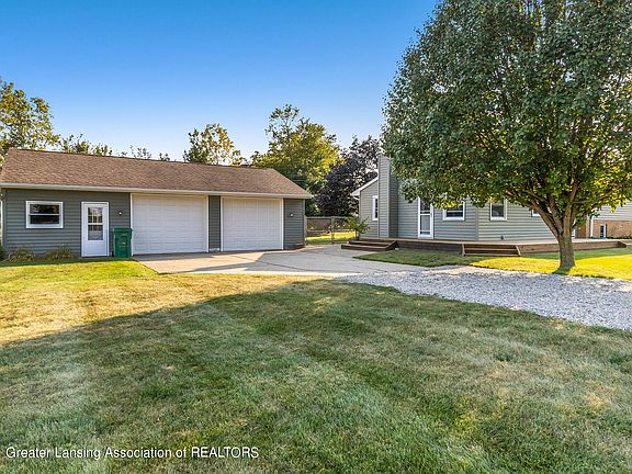 Beautifully updated three-bedroom home centrally located in Dewitt/Eagle are in Watertown Township. This 1+ acre home has a big fenced in park like yard for dogs and kids! A 40x23 three car garage is ready for cars, tools, and toys. Both house and garage have 200-amp electrical service. Walk in the door and into the gorgeous, updated kitchen with hickory cabinets, spacious drawers, Cambria Quartz countertops, and huge pantry. The spacious living room has hardwood floors with a beautiful Buckwoodstove that heats the home on a cold winter evening. Upstairs are three large, carpeted bedrooms and a new main bathroom with a cast iron tub. The third level has a walkout basement with a Great Room ready for the new owner to create their space, a potential second bathroom with working shower, and large laundry room. The fourth level is a huge, freshly painted basement that is used for storage. This home also includes a new drain field, new septic tank, siding, roof, wrap around deck.