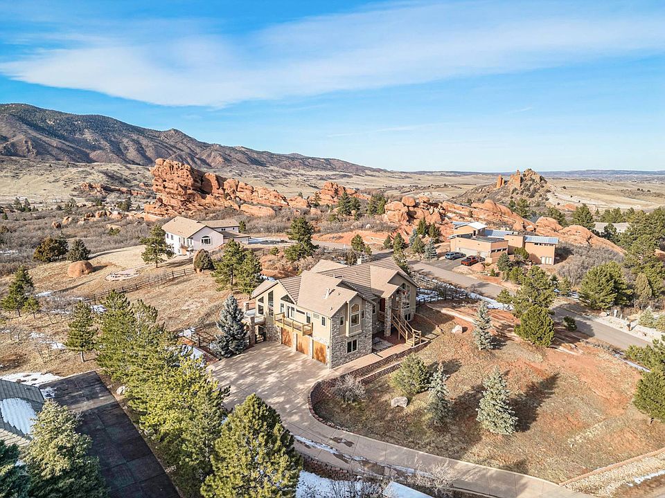 Welcome to this stunning stucco and stone-clad home in prestigious Perry Park in Larkspur where breathtaking views greet you from every window. The beautiful hardwood floors, high beamed ceilings, and open, airy design make this property feel like a true sanctuary. As you enter, you're welcomed into a spacious living room with stunning panoramic views of the surrounding mountains. Enter over elegant slate tile overlooking an abundance of hardwood flooring to view a stone-clad fireplace creates a warm atmosphere, and the walkout offers easy access to the outdoors. The chef's kitchen is equally impressive, featuring a large central island where you can gaze at gorgeous rock formations while cooking. The kitchen is fitted with chef-quality appliances and plenty of working and storage space. The separate dining room continues the theme of elegance with hardwood floors and large windows that showcase the stunning views. Adjacent to the living room, you'll find a well-equipped office with custom built-ins, a cozy fireplace, and-of course-more spectacular views. A bedroom on the main level also offers privacy, with its own entrance to the bathroom. Head upstairs to discover the luxurious primary suite, complete with a private balcony, a massive walk-in closet with an island for additional storage and a cozy fireplace. The closet features a convenient laundry chute leading to the laundry room. The ensuite bathroom is designed for relaxation over beautiful travertine floors with a free-standing shower, dual vanity, and a jetted tub positioned perfectly to take in the incredible views. Downstairs, the basement offers an additional bedroom and a flex room currently being used as a gym but could easily be configured as another bedroom The recreation room is perfect for entertainment & gatherings, with a convenient walkout to the backyard. A flex room full of mirrors provides an ideal space for a private workout studio. This home is truly one-of-a-kind, offering both comfort and style at every turn. Make it yours today and experience the best of mountain living!   Don't Get Stuck Owning TWO Homes...Buy This Home, I Will Buy Yours!  If you are looking to buy a home but have one to sell, you are finding yourself in the same dilemma that most homeowners find themselves in: We can help! To discuss the details of this incredible option, call the listing agent or visit our website and get several guaranteed offers on your home!  Call for our Exclusive Buyer Protection Plan - Love It or Leave it Guarantee  Buy this home and if you are not satisfied in 24 Months I'll Buy it Back or SELL IT FOR FREE NO Gimmicks! We can help! BarbHasTheBuyers.