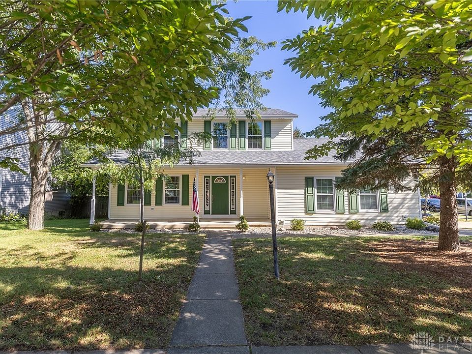This is the one you've been waiting for! Beautiful neighborhood, great location (10 min from WPAFB), corner lot, and the kitchen of your dreams! This home greets you with a large beautiful front porch with gorgeous shade trees. Step inside to the natural hard wood floors (2022) throughout the first level that leads you straight into an all new expanded kitchen (2024). You will swoon over the custom Mauk Cabinets, quartz countertops, gas stove, extra large sink, custom bench seat, ample cabinets, open shelves, additional work station, glass pendant lights, and extra large island made to fit several bar seats. This space then leads into a large family room with a cathedral ceiling and a wood-burning fireplace with a gas line for starting. It is the ultimate feel of comfort and coziness. The first floor also includes an extra space for a large living room, office or dining room, along with one half bath and a laundry/mudroom. Upstairs you will love the very large master ensuite with walk-in closet and perfectly remodeled full bath (2024). New carpet has been installed upstairs that leads to the other 3 bedrooms and full bathroom. This home offers a full finished basement (completed in 2021) that houses the 5th bedroom with egress window, large rec room, and huge storage space. Outback you will love the fenced in backyard, concrete patio with pergola, storage shed, swing set (2020) and hot tub (2022)! You will notice too that the backyard has blackberries and raspberries along the back as well as concord grapevines, 2 apple tree, 1 pear tree, and 1 peach tree. There is even a small chicken coop you can utilize for a full homestead experience. This home truly has everything you need and ever want! Other updates include: roof (2020), windows (2021), gutters (2022). Come see it before it's gone!
