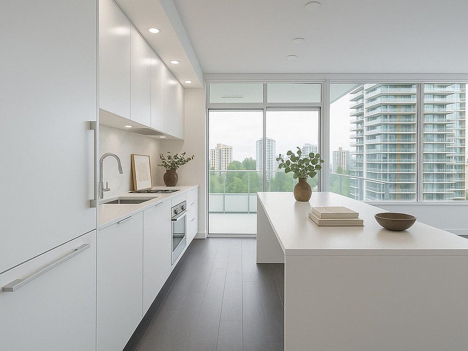 Bright corner suiteOpen layoutAir conditioningModern kitchenLarge islandBosch appliancesRadiant-heated ensuite