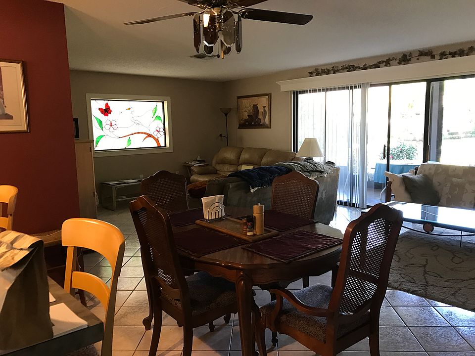 BEAUTIFUL and updated end unit villa with tile and wood floors throughout. You will enjoy the open, light feeling. Great location across from the Lodge in prestigious Timber Pines. Timber Pines is a gated, 55+ Golfing community. The 4 courses are pristine, consisting on one Championship course, 2 Executive courses, and on 9 hole pitch and put. There is no additional charge to play the Executive courses. Enjoy the COUNTRY CLUB, Restaurants, Heated Pools, Performing Arts Center and Entertainment, Lodge, Physical Fitness Center, Billiards, Wood Workshop, Tennis, Pickle Ball, Shuffleboard, over 100 Clubs and much more. Come enjoy the Good Life.