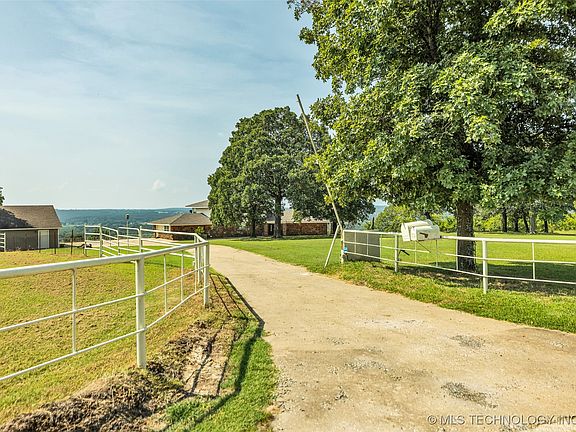 This spectacular view home is situated on 340 acres located just 30 mi south of downtown Tulsa. It sits perched atop a scenic bluff of 200ft of elevation & sweeping 180-degree panoramic views that stretch for miles. Privacy is enhanced by restricted access.